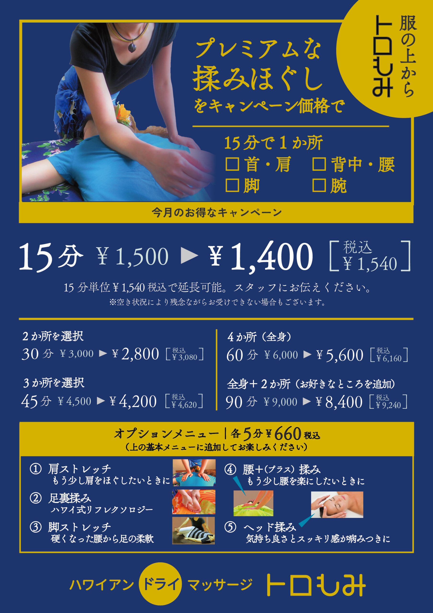 クウイポロミロミサロンは、ただ「もむ」だけのマッサージではありません。